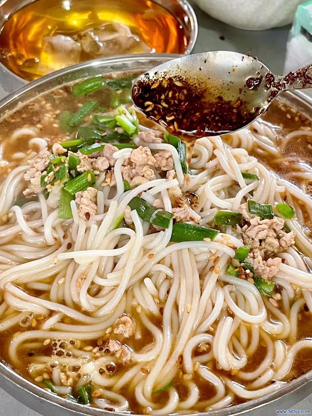 米线是用腹地的优质大米作念的,口感Q弹爽,汤底亦然现熬的,再搭配上特制的酸醋,相等上面。(醋和米线是分开的,可以凭据我方喜好加醋)。