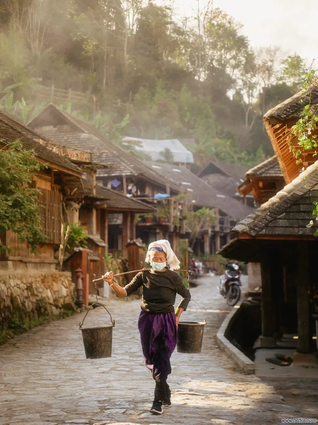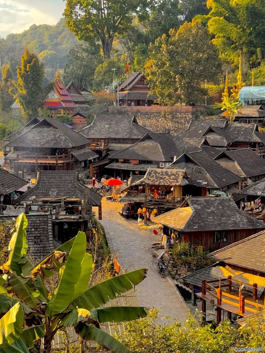 通盘寨子归隐于山水之间,来到儿,就能踌躇在古树的海洋里,随地都是木头的香气。