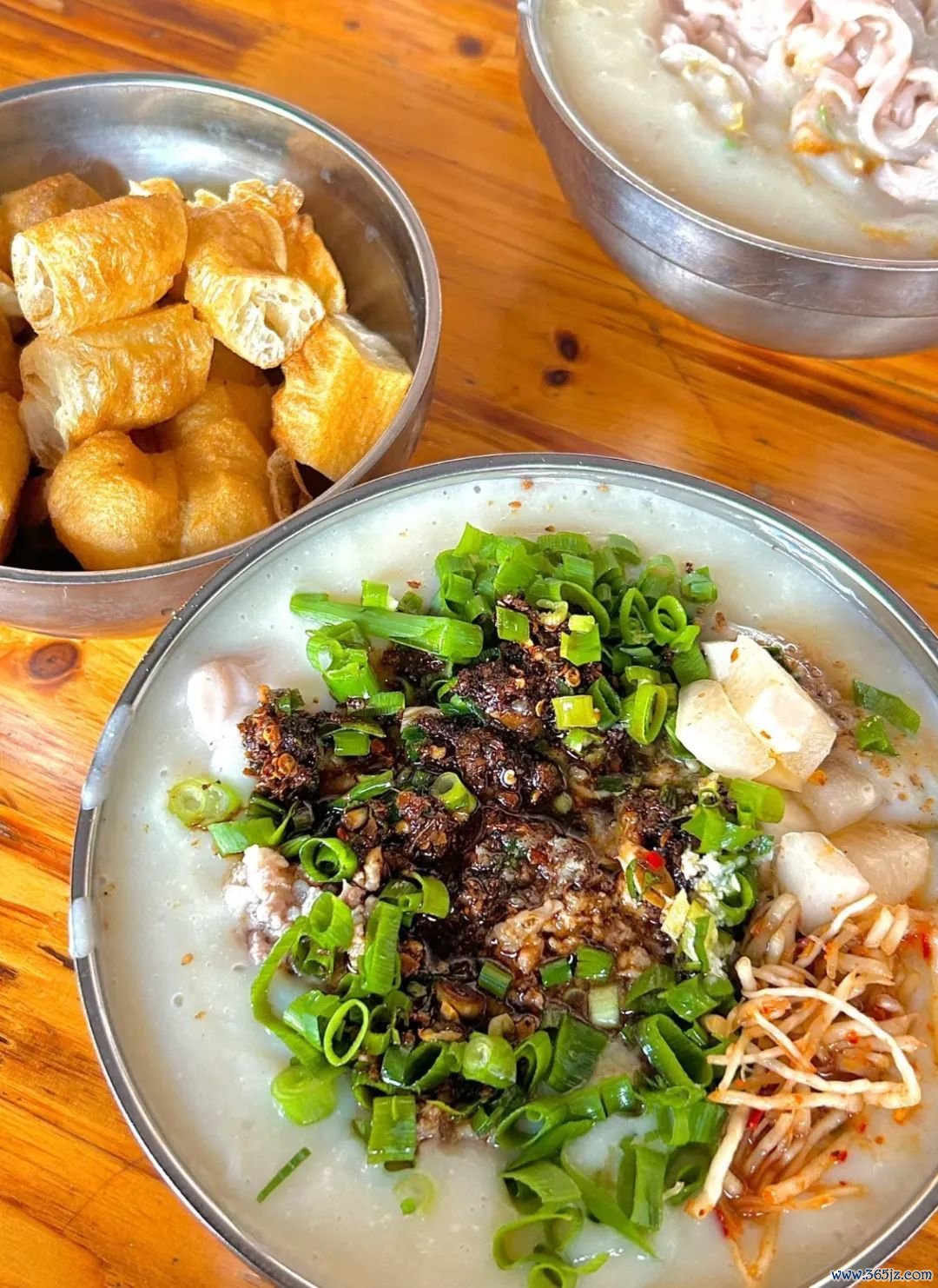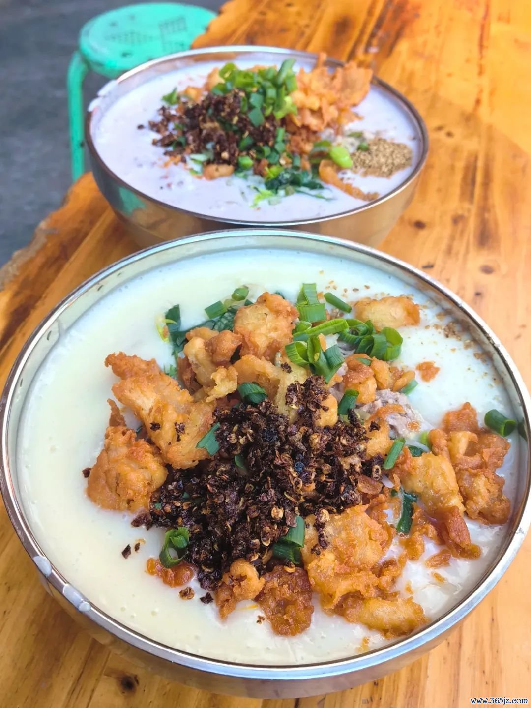 终末还要加上韭菜、芽菜、折耳根、麻油、油辣椒等配料,搅动一下,吃起来爽口得很,再配上一根炸好的油条,太绝了。