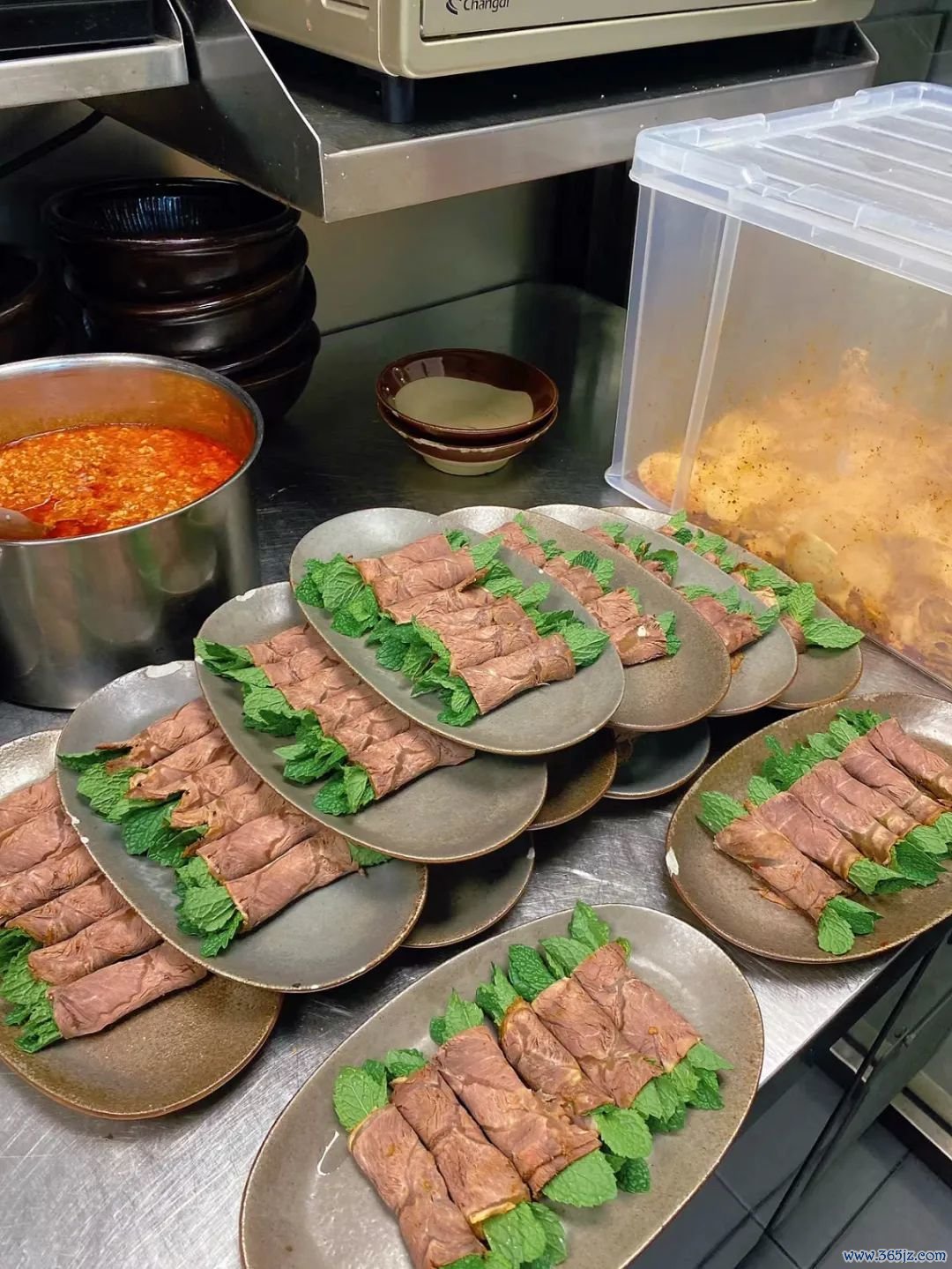 还有薄荷牛肉卷,薄荷的幽香伴着酸辣的口感,加上黄牛的鲜活,一吃就停不下来。