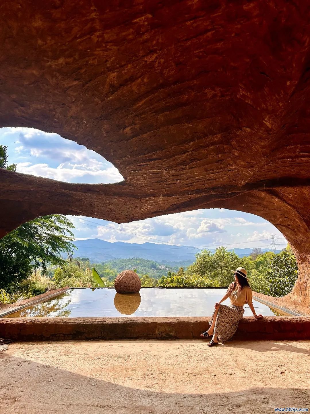 很出片的“月球冥想屋”,是用咖啡渣和当地的红泥,再搀和回收的废物搭建的。