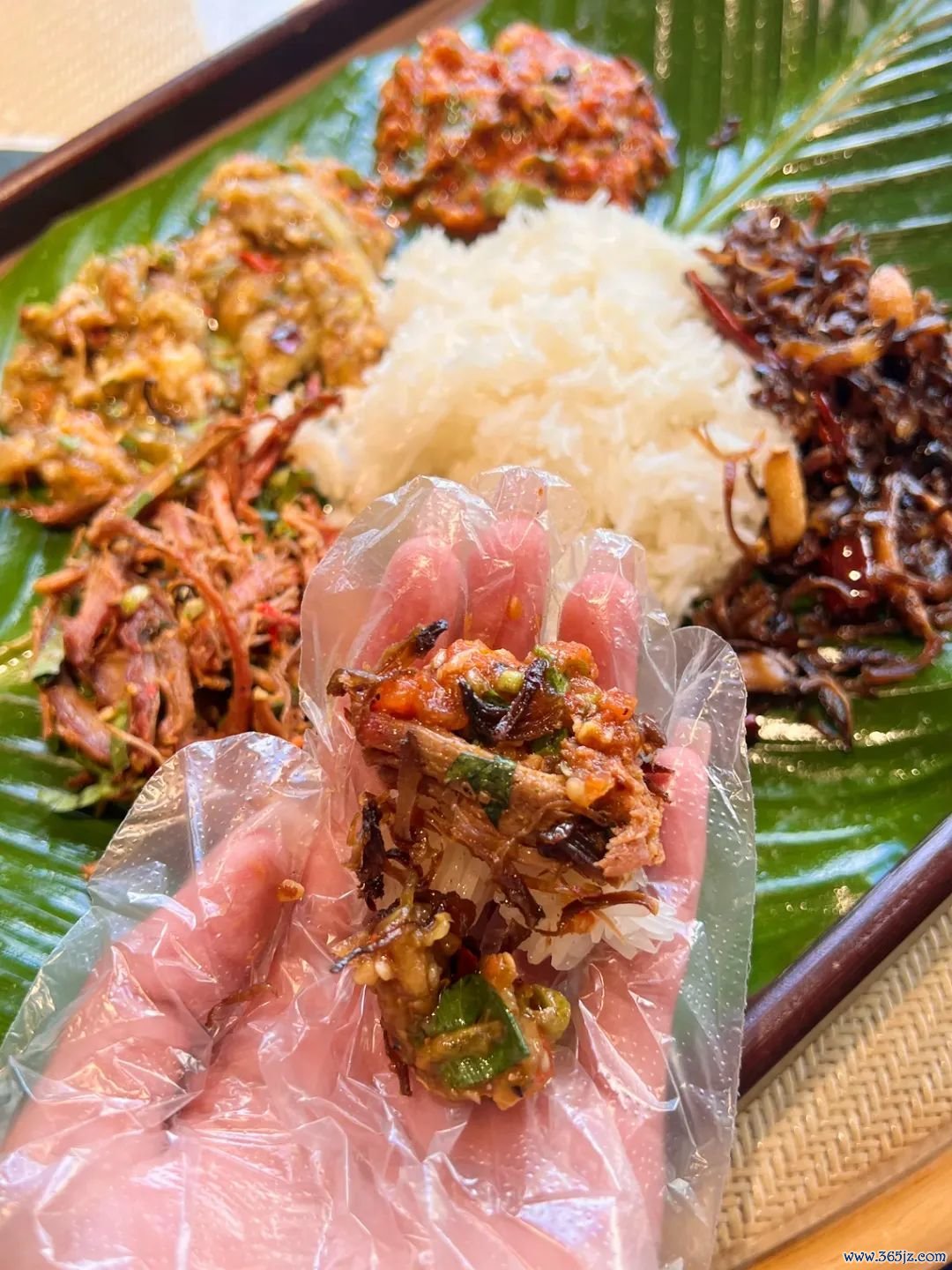 除了巨出片之外,逛老街区还能吃到米干、酸醋米线、老挝糯米饭,现烤的火腿等传统好意思味,确凿太豪放了。