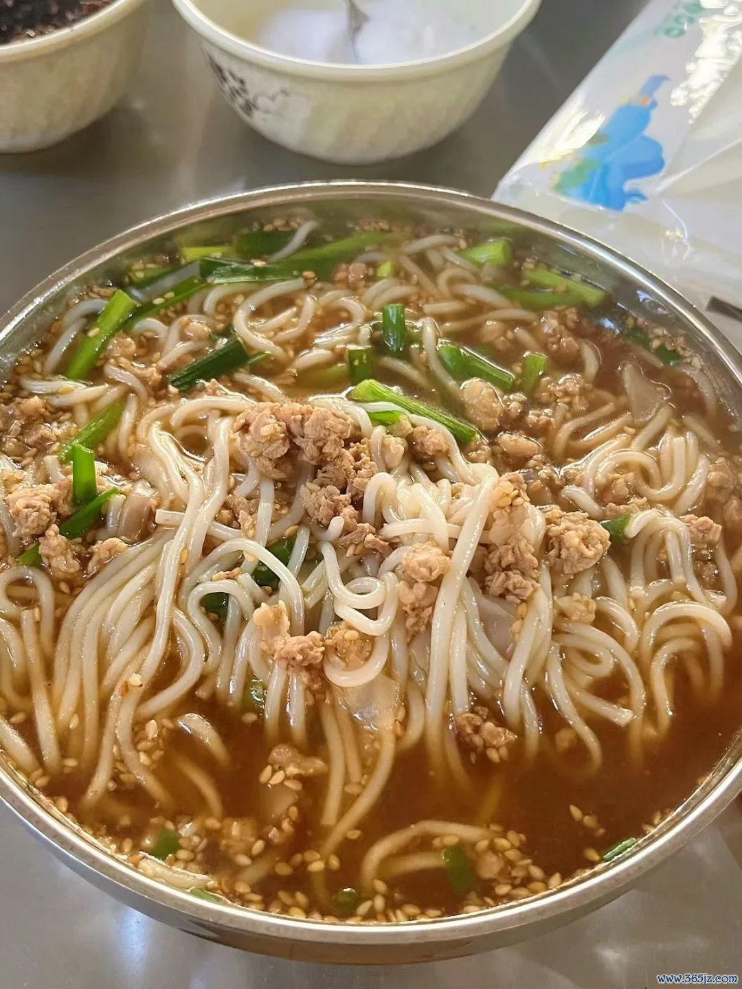 一碗纯正的酸醋米线除了“醋”是灵魂外,还得加上现炒的肉沫、芝麻和韭菜才够味儿。肉沫甚而分了肥瘦和瘦肉两种,铺满一整碗,光是看着就让东谈主食欲大增。
