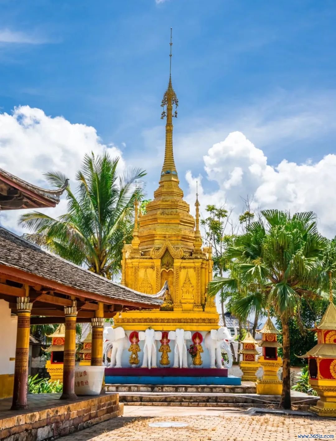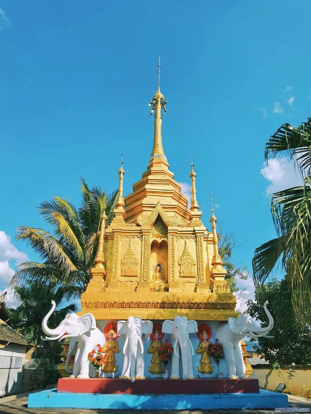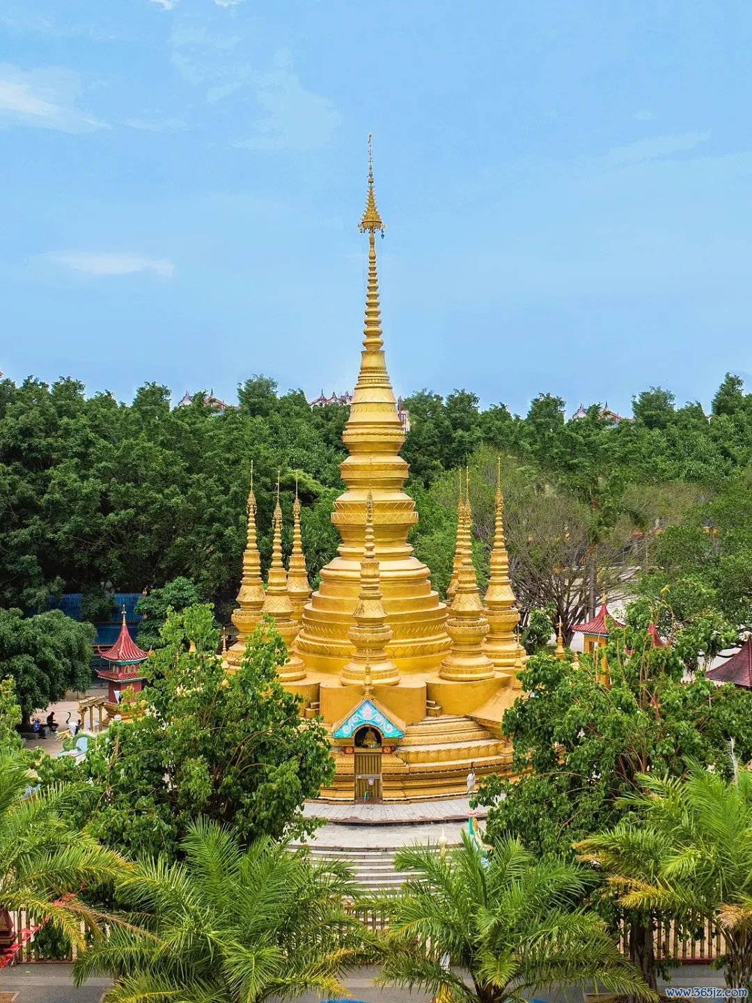 整座金塔由8个小塔环抱主塔组成,超有佛国意韵,白昼在阳光的映照下熠熠生辉,晚上开灯后会更壮不雅。(门票5元)