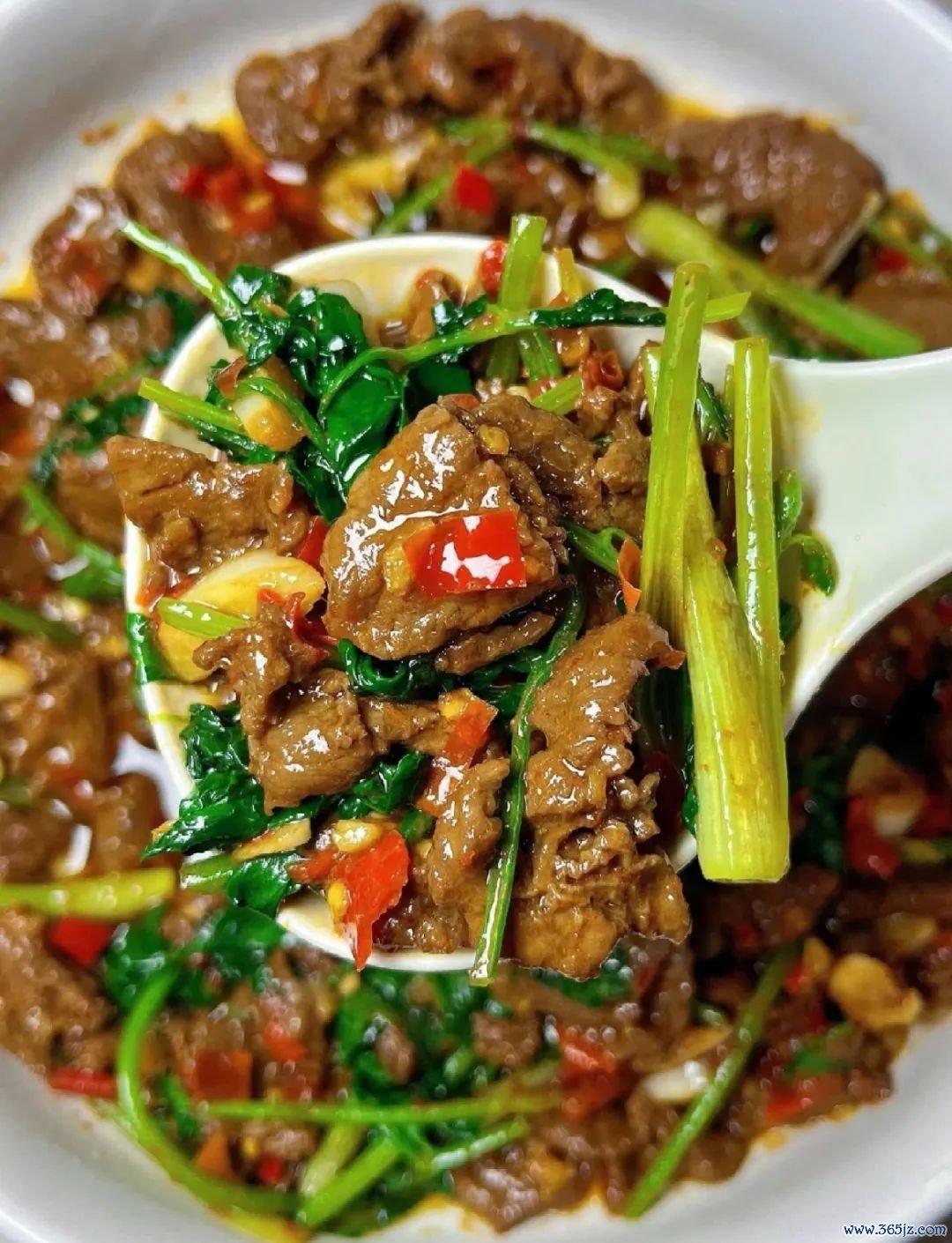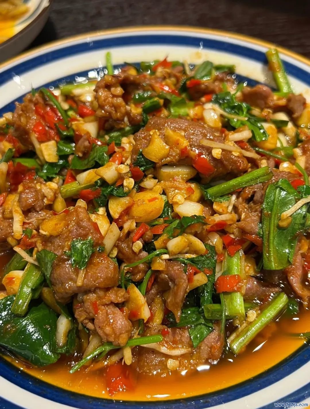 小炒牛肉内部也得加上芹菜,炒牛筋的时刻不忘韭菜,当肉香和菜香会通,上桌后,样样都是干饭神器。