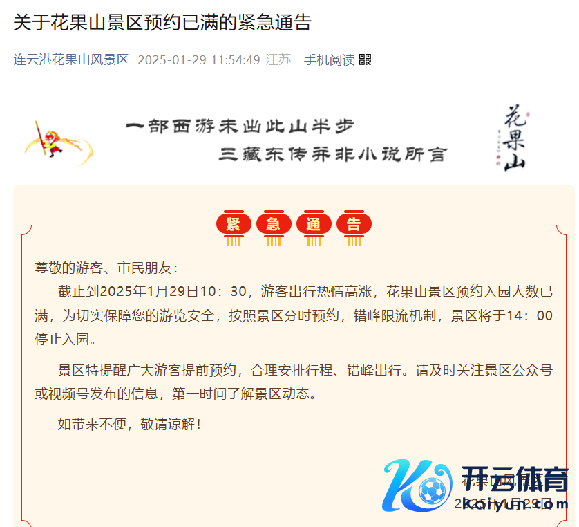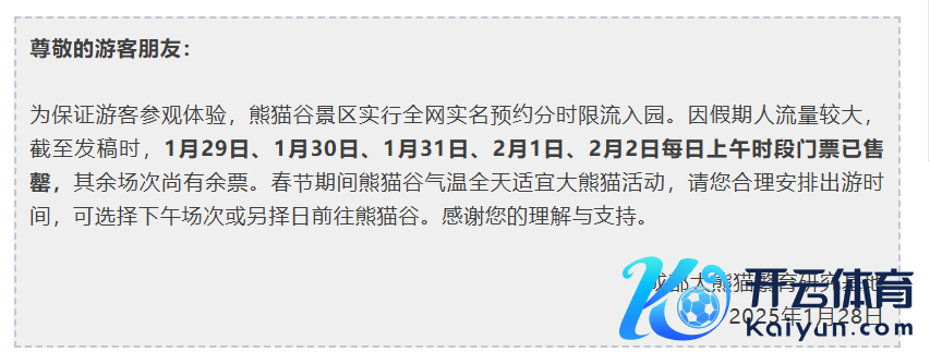 起原:21财经、各景区公告、潮新闻、深圳新闻网、都鲁晚报、成都发布、起始新闻、西安文旅开云体育