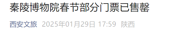 1月29日晚,大唐不夜城外围已限流30%。秦陵博物院春节部分门票已售罄。