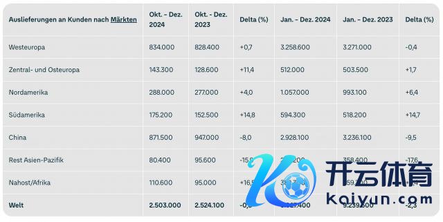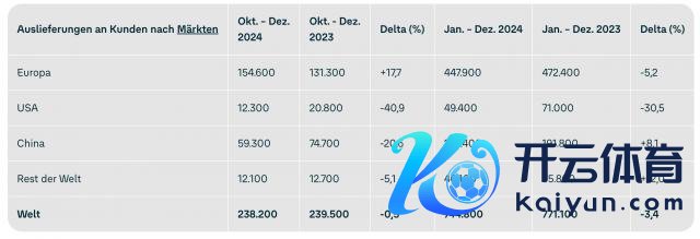 专家汽车集团全球销量下滑,主要也曾因为中国商场,好意思洲的增长被西欧、中国的下落所对消。数据涌现,中国事专家汽车集团全球最大单一商场,2024 年累计销量 292.81 万辆,占全球总销量的 32.4%,但该商场销量同比下滑 9.5%,是销量下滑幅度最大的商场,此外专家汽车在西欧销量下滑 0.4% 至 325.86 万辆。算作对比,专家汽车在中欧和东欧、北好意思、南好意思、中东 / 非洲均收尾增长,其中南好意思同比增长 14.7%,但由于商场限制远不如中国商场,即便增长也未能对消中国商场的劣势。