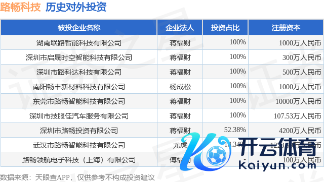 开云(中国)kaiyun网页版登录入口路畅科技共存在对外投资9项-开云「中国」kaiyun网页版登录入口