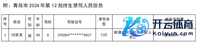 12月26日,青岛市公安交警部门公布了2024年第12批终身禁驾东说念主员名单,1东说念主被终身禁驾。据了解,终身禁驾是一项严厉的行政处罚,意味着驾驶东说念主“终身不得从头登科活泼车驾驶证,终身弗成驾驶活泼车”。当今世界已经齐全了交管信息联网,已经处罚后,驾驶东说念主信息将录入世界活泼车驾驶员处理系统,被锁定为终身禁驾的驾驶东说念主无论在省内如故省外齐无法再登科驾驶证。