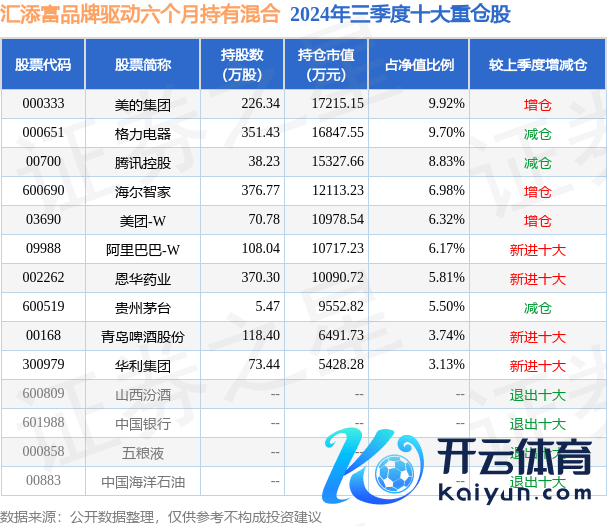 汇添富品牌运行六个月抓有混杂为混杂型-偏股基金,凭据最新一期基金季报露馅,该基金钞票建设:股票占净值比75.5%,债券占净值比0.1%,现款占净值比14.05%。基金十大重仓股如下: