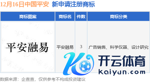本站音书,凭证企查查数据泄漏,近日中国祥瑞保障(集团)股份有限公司新提交“祥瑞融易”等3件商标注册恳求。商标恳求确定如下: