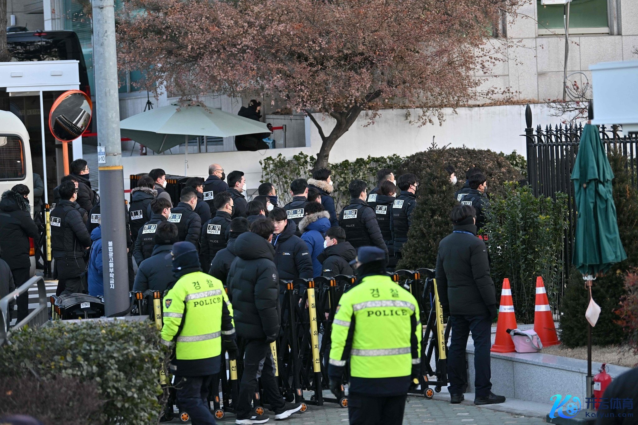 △当地时分1月3日,尹锡悦总统官邸外,韩国警方和公调度东说念主员抵达现场