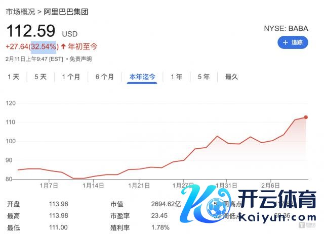 2025 岁首于今,受 DeepSeek、苹果 AI 等多个讯息影响,阿里巴巴股价累计涨 32.54%,超出市集预期。