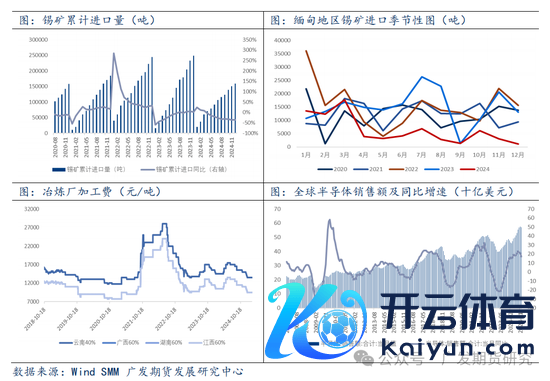 自2024年8月1日起,缅甸曼相矿区住手锡矿分娩,作念为中国最大的锡矿入口起原国,缅甸地区的停产使的国内原料供应病笃。凭证入口统计数据,2024年我国锡矿的总入口量降至15.89万吨,同比下降了36.18%。十分是从缅甸入口的锡矿量,大幅减少至7.64万吨,降幅达到57.67%。受到锡矿供应短少的热烈冲击,国内锡矿加工用度自11月起屡次下调,累计降幅达到2000元/吨,并握续在低位运转。