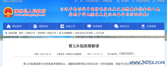 甘肃省陇西县卫生健康局近日在官网公布“育儿补贴战略解读”著作指出,“育儿补贴是国度为复古家庭养育婴幼儿、缓解家庭养育压力而诞生的一项补贴轨制,我省于8月26日稳健上线。”