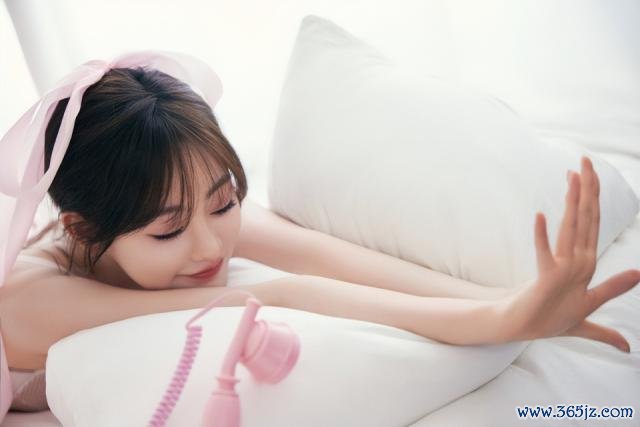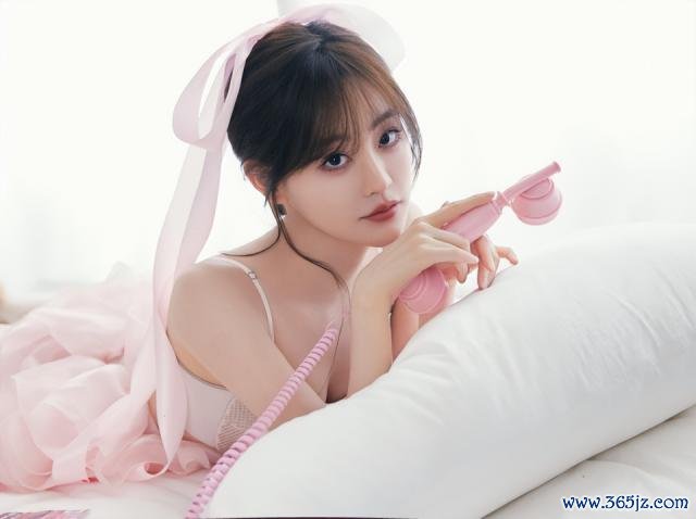 氛围转向餍足甜好意思。仅着节约淡色吊带,趴卧于柔嫩枕上。粉色丝带轻绕发间,手合手复旧听筒,目光理会宁静。褪去丽都,更显地说念的当然好意思和执行里那份恬静气质。