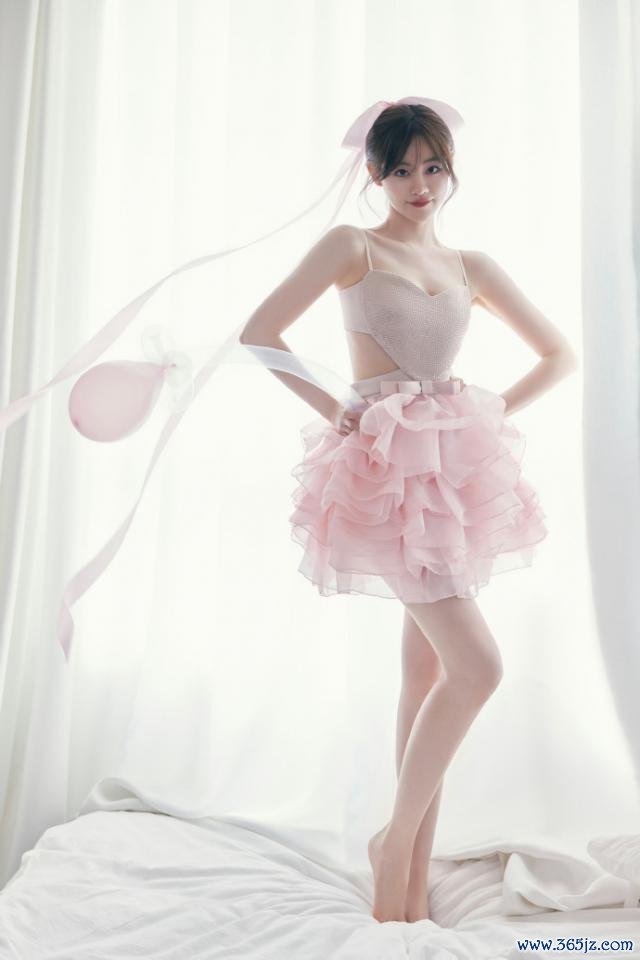 这张像片中,祝绪丹身着一袭心形吊带裙装,上装的闪亮元素竣工勾画出她的邃密锁骨和优好意思肩线,下装的多层粉色薄纱短裙蓬松如云朵,尽显放肆气味。头戴同色系蝴蝶合髻饰,长发束起却留一侧发丝当然洒落,在柔软色泽下,她的颜值仿佛自带滤镜——皎皎肌肤与灵动目光交汇出仙女的纯净感。