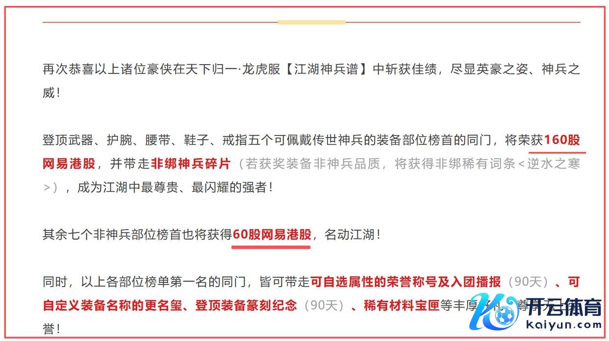 阐述运营两个月后,龙虎新区也张开了死灰复燎的“神兵评比”行为,这是黄金服让大佬骄贵的最高规格展示会,大概赢得冠军的齐能赢得网易港股股票,这就意味着成为网易推动,当然让大佬们兴盛额外。