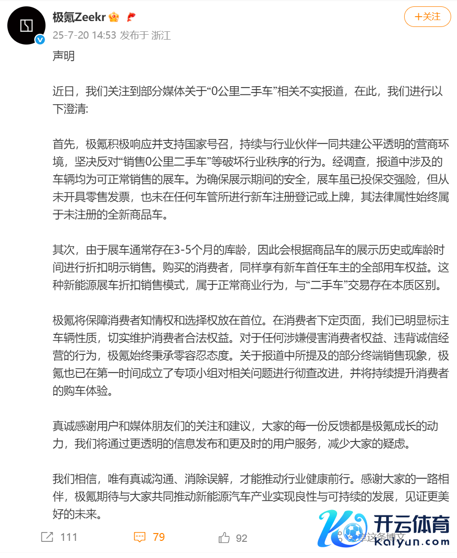 极氪否定销售“0公里二手车”欧洲杯体育极氪否定销售“0公里二手车”