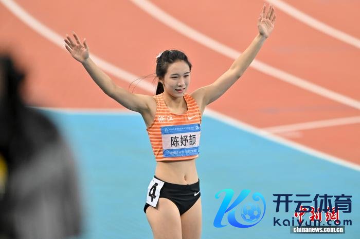 11月19日,第十五届宇宙畅通会田径女子200米决赛在广东省奥体中心畅通场举行,年仅16岁的浙江队陈妤颉摘金,湖北队朱俊颖取得银牌,江苏队蔡燕婷取得铜牌。图为陈妤颉得手后庆祝。 中新社记者 陈骥旻 摄