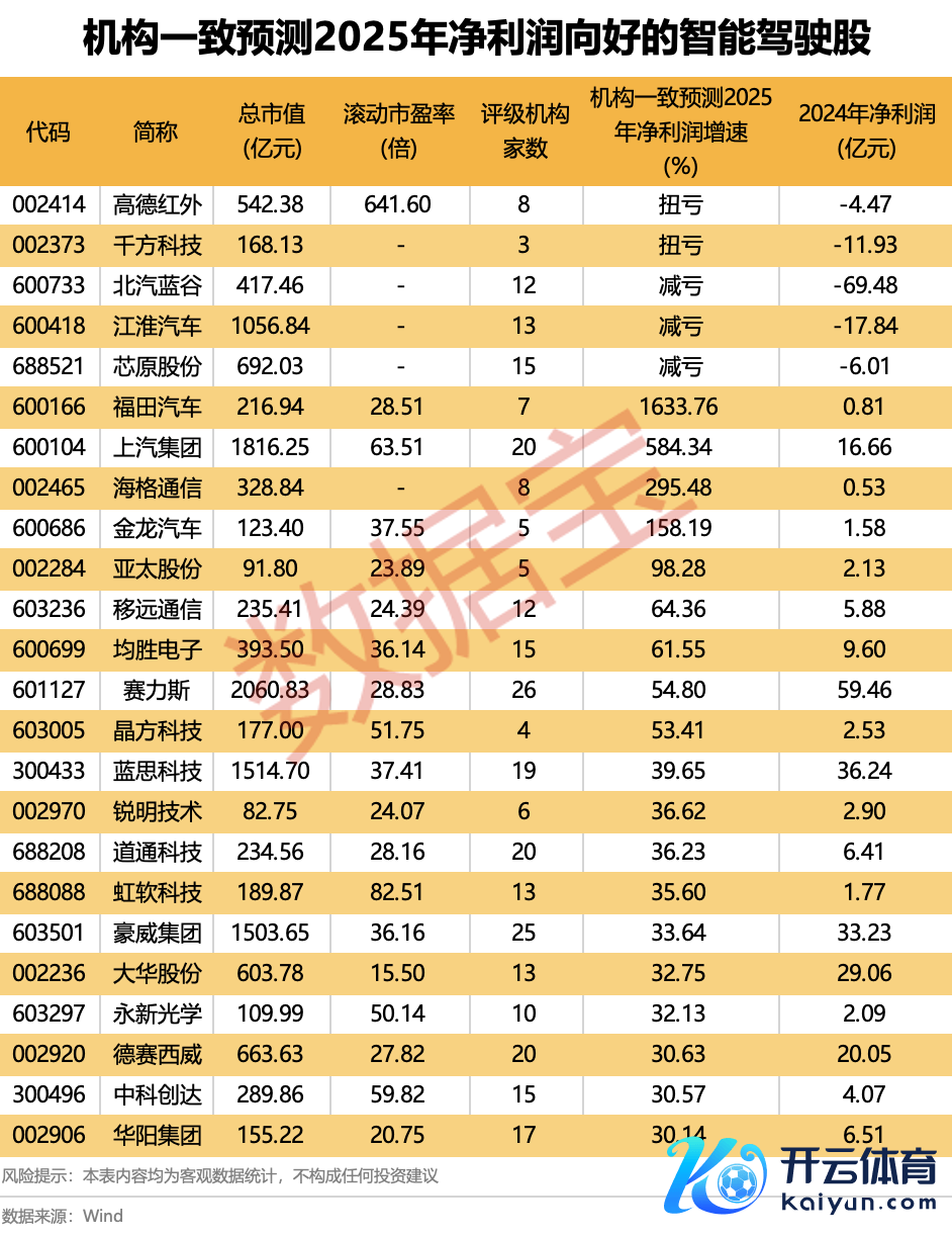 机构一致瞻望2025年净利润向好的智能驾驶股一览开yun体育网机构一致瞻望2025年净利润向好的智能驾驶股一览
