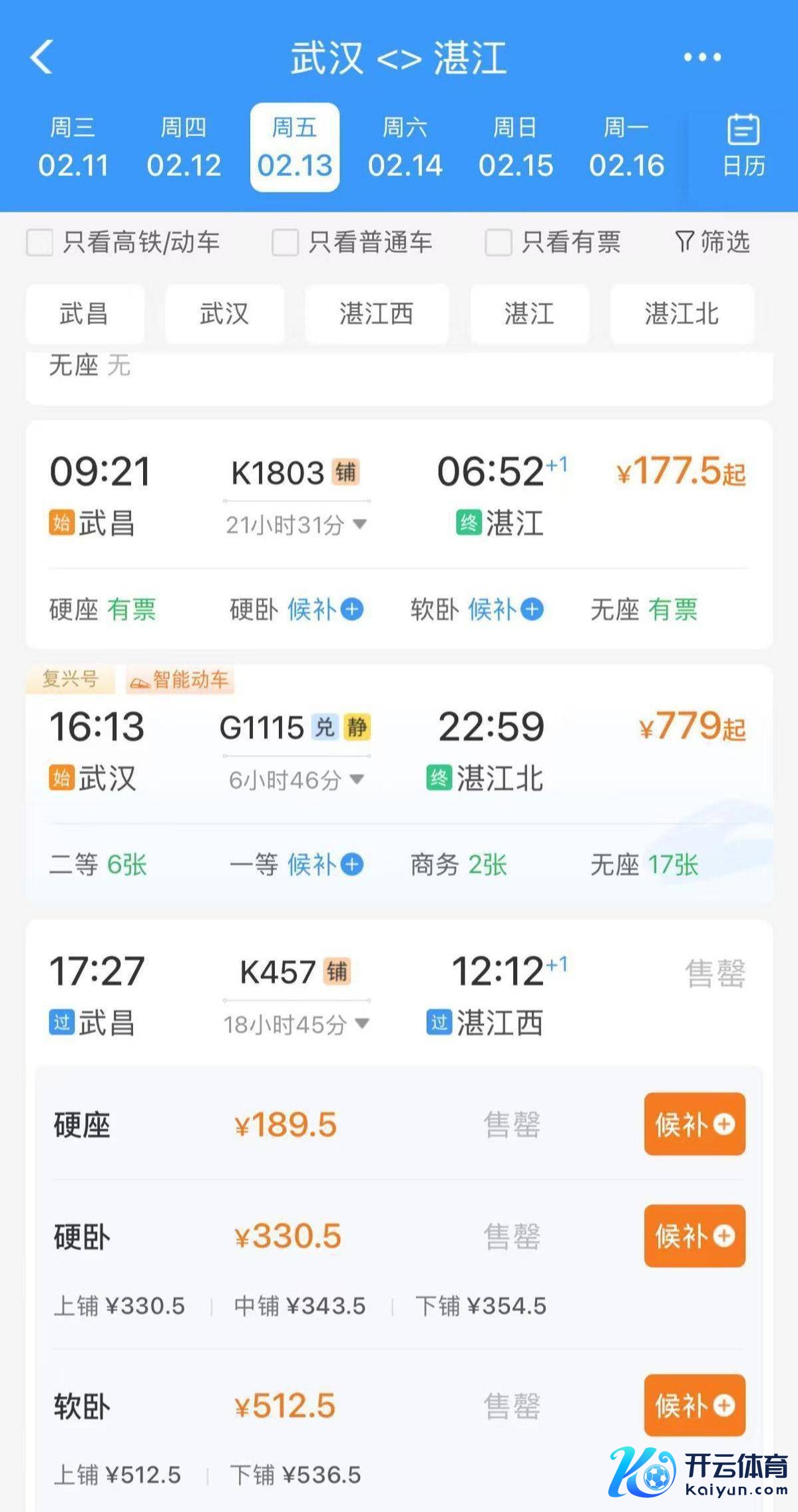 网上许多搭客发出的视频中,绿皮火车上坐得满满当当。在12306上检索一下,不少绿皮火车一语气多日的车票都已抢购一空。武昌站看成武汉普速列车的迫切要道,本年春运瞻望发送搭客219.8万东谈主次,站内停泊的绿皮车流露北京、上海、湛江等寰宇各地。